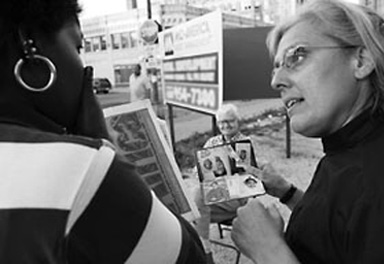 Wilson shares photographs of her family with Barbara Bolsen, a Night Ministry