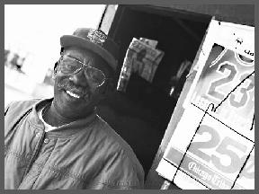 the door of the stand .He has the most beautiful, friendly and honest smile.